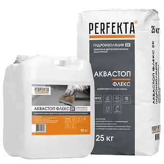 Отзывы о «Гидроизоляция цементная Perfekta двухкомпонентная эластичная Аквастоп Флекс 2К, 25 кг+10кг»